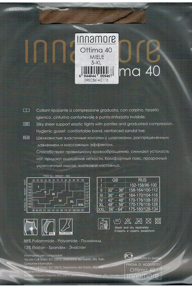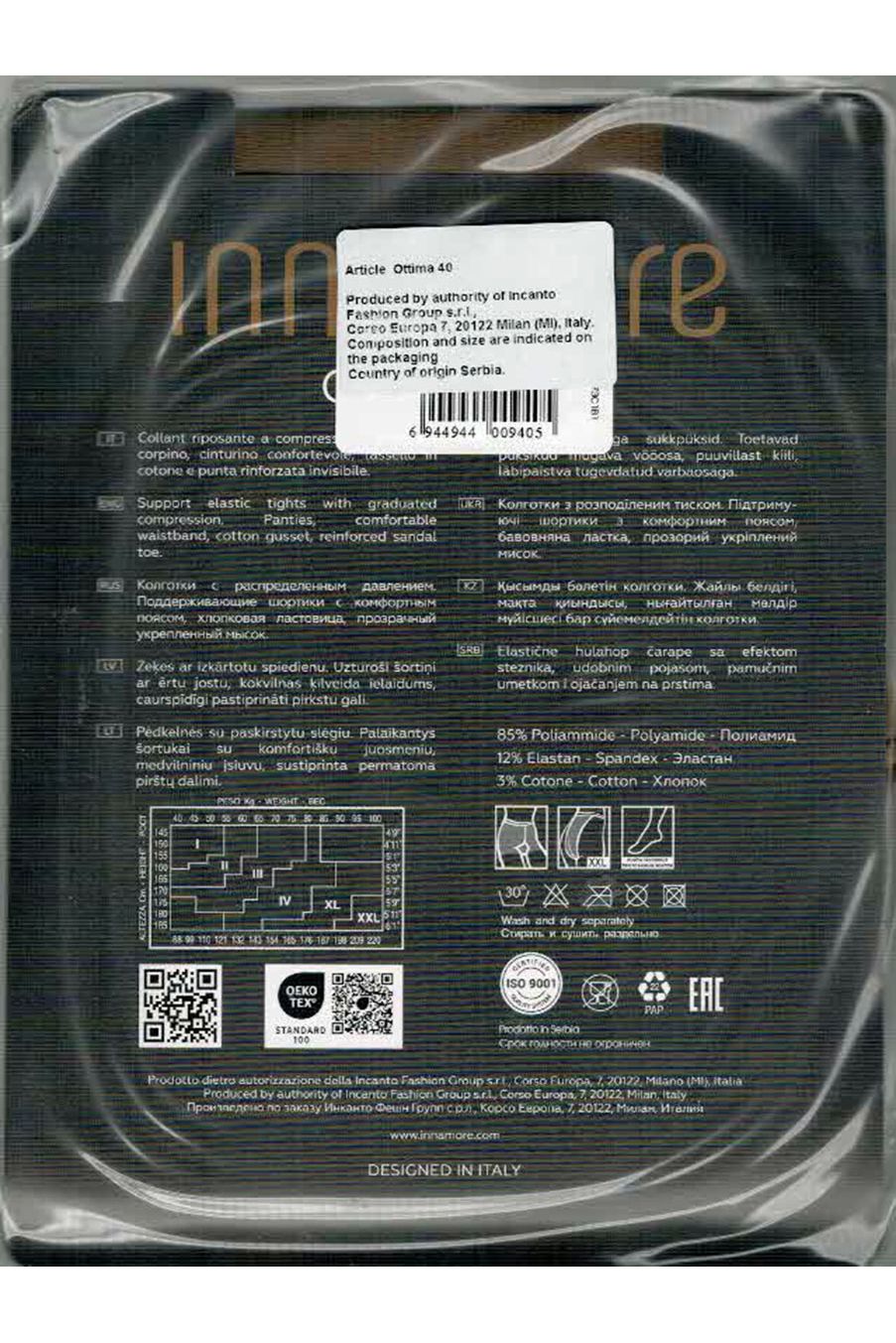 Колготки 40 ден Итальянского производства от известного бренда Иннаморе. Данная модель является полным аналогом колгот Омса, распределенное давление по ноге, поддерживающий верх в виде уплотненных шортиков, хлопковая ластовица, размер 6 имеет заднюю вставку.