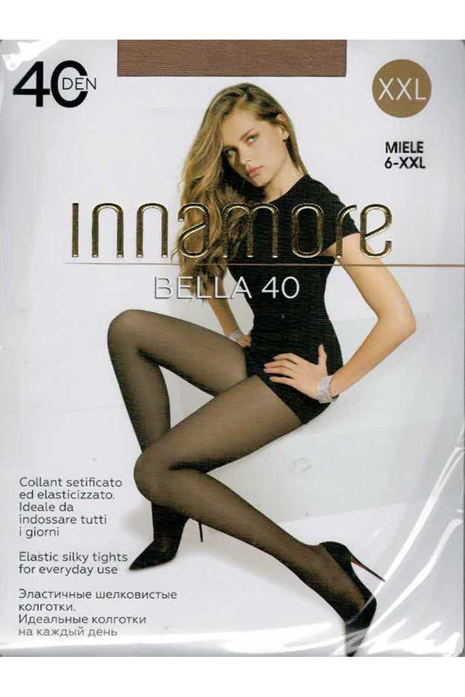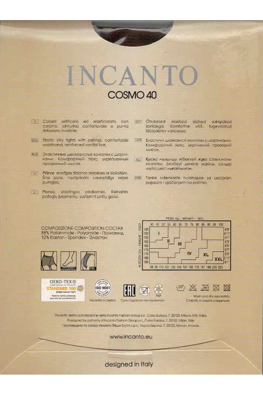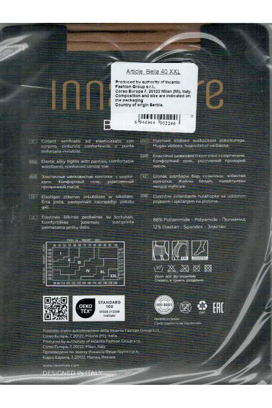 Колготки женские 40 ден от Итальянской фирмы Инканто. Уплотненный верх, укрепленный прозрачный носок, размер XXL имеет заднюю вставку.